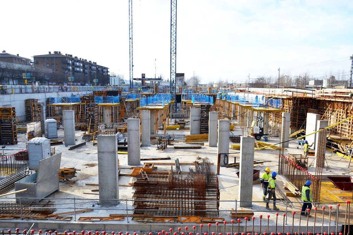 Els operaris estan acabant d’aixecar l’estructura i els pilars sobre els quals se sustentaran les plantes superiors. A la vegada, també s’han iniciat les fases d’instal·lació i envans de les plantes subterranies.
