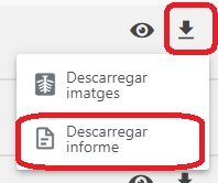 - Descarregar informe: Per compartir l'informe es pot descarregar l'informe en PDF i imprimir-lo o enviar-lo per correu al metge amb la icona:
